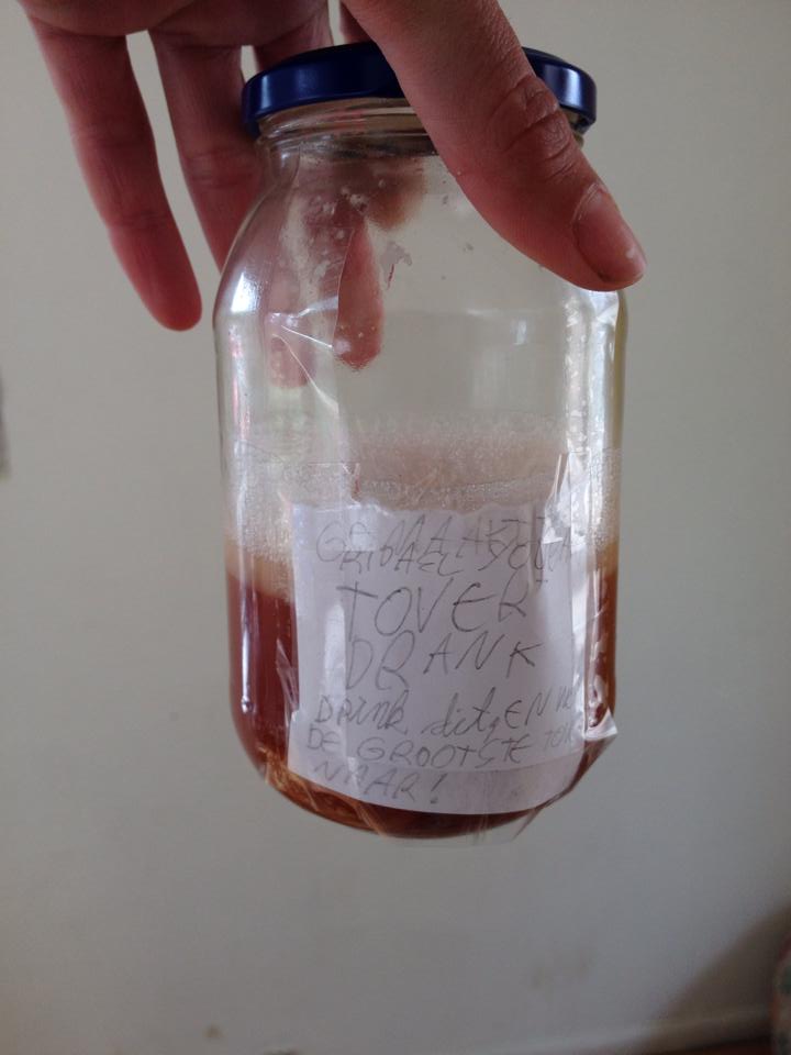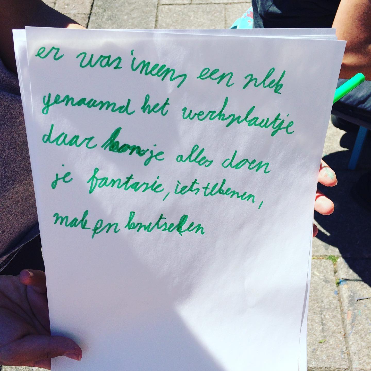 Ik vind het belangrijk om vanuit de kinderen en hun fascinaties te werken. Bij het werkplaatsje ontwikkelen de kinderen hun eigen ideeën. Kleuren mengen is een wonder, wat kan je nog meer allemaal mengen? En zou iemand dit drankje willen kopen?