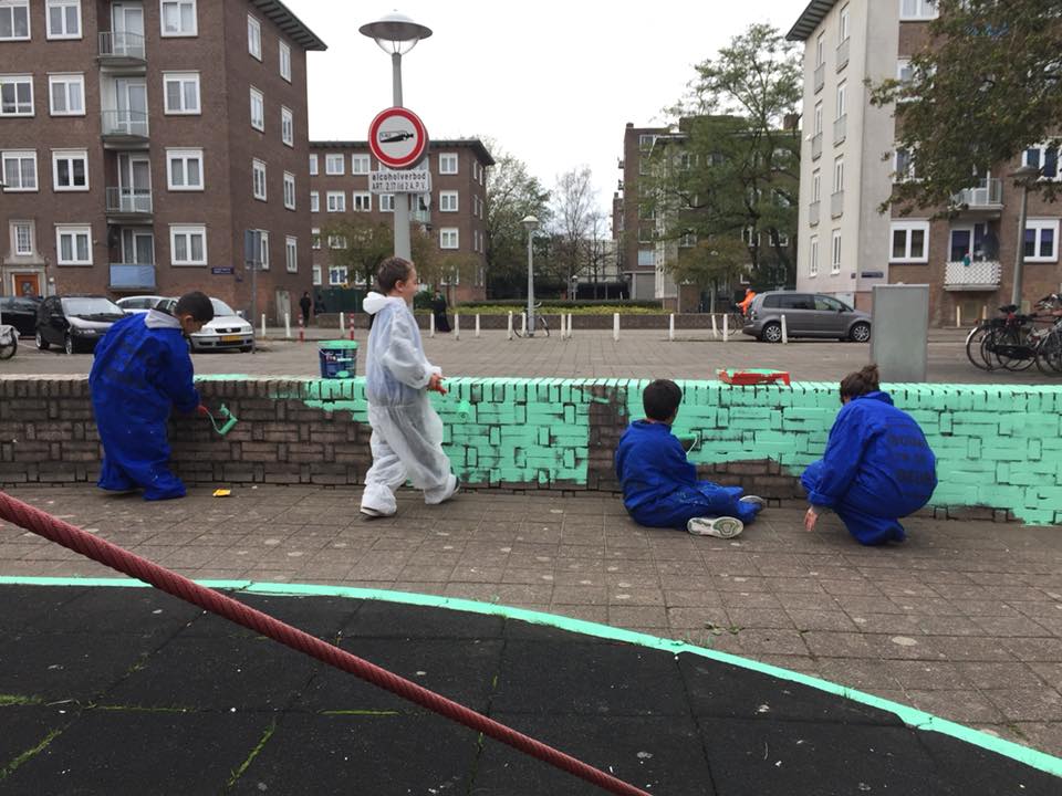 Naar een gedicht van Jaap Robben. 4 kunstenaars adopteren een pilaar van een viaduct in de Kolenkitbuurt.