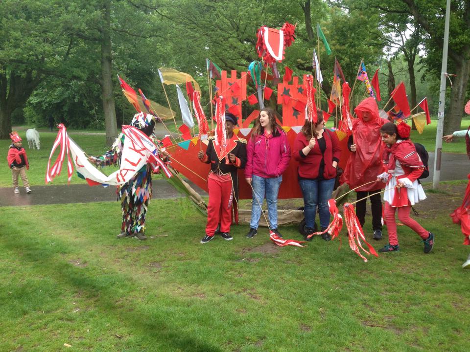 Samen met een bewegende boom het decor van een kindervoorstelling een zomer lang op theaterfestival De Parade.