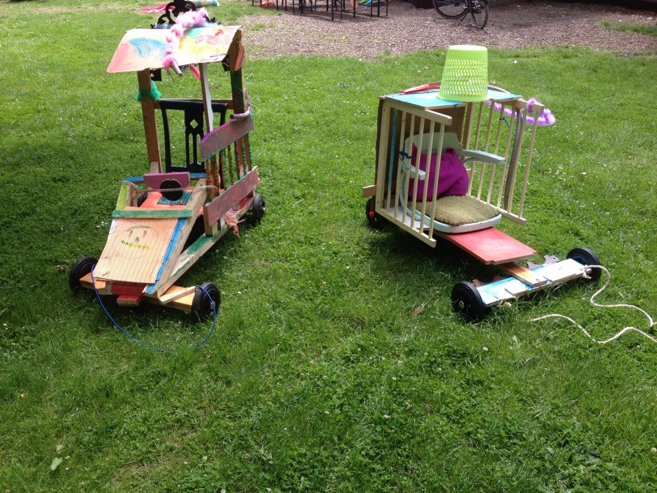 ButtonDe kinderen werken tijdens fantasiefazantenweg aan hun eigen winkelmeubilair.